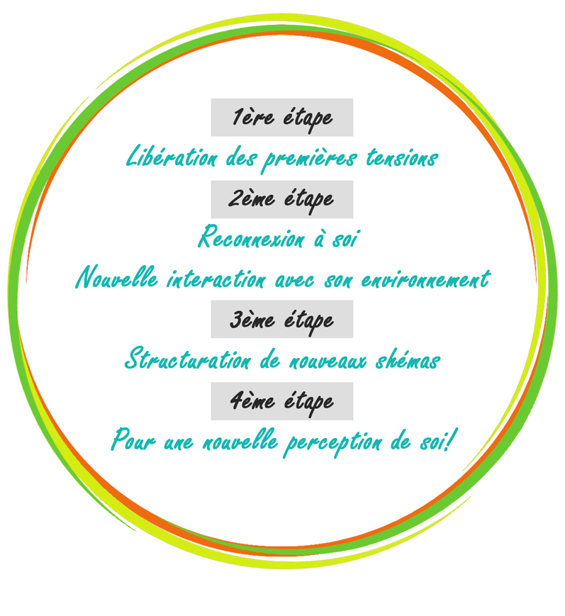 L’objectif d’accompagnement est de libérer les zones tendues, dynamiser les autres afin d’accompagner le corps dans son action d’ajustement vers une homéostasie durable, donc un état d’équilibre et de bien-être immédiat et préventif selon ses propres ressources.